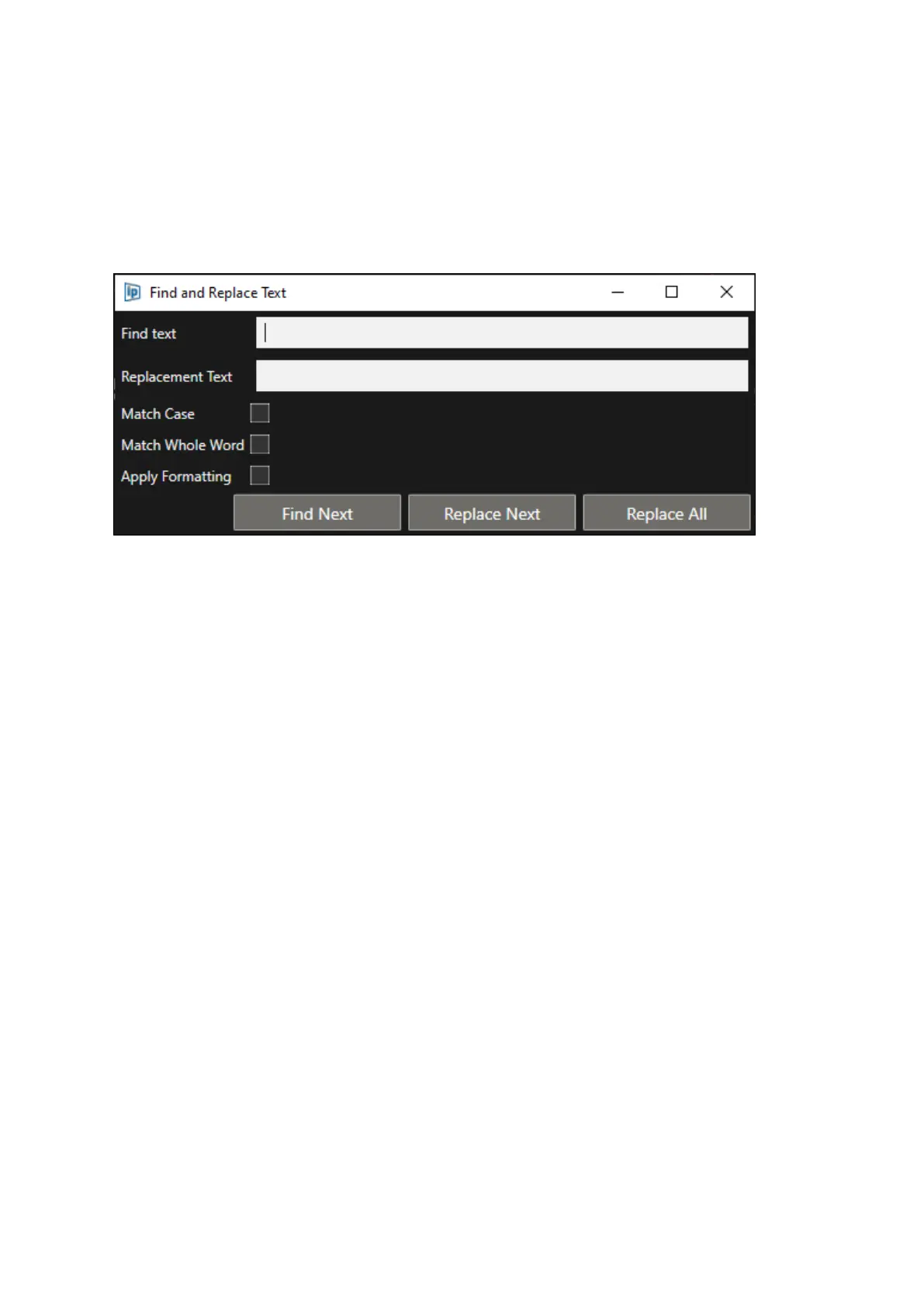 WP-IP has a find and replace tool to speed up the editing and searching of text. To open the tool
