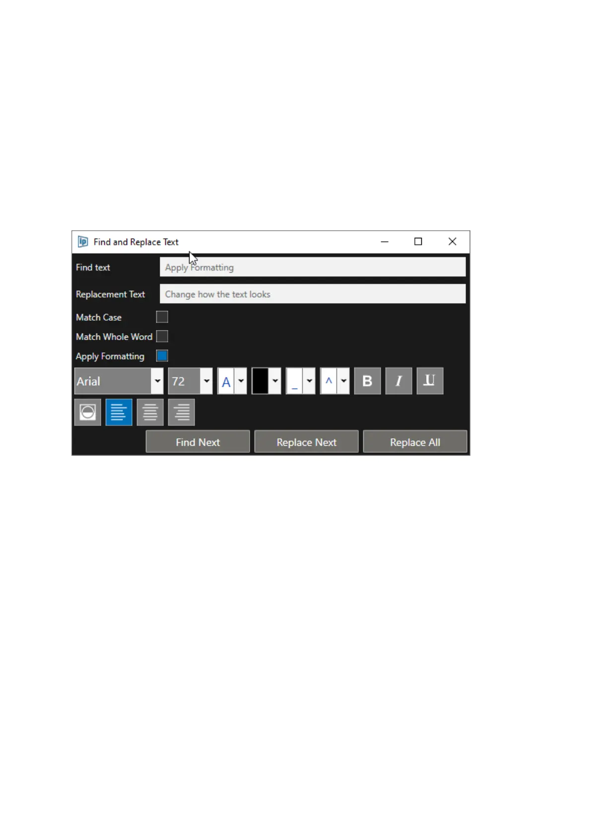 To apply specific formatting to the replacement text, click the Apply Formatting box.