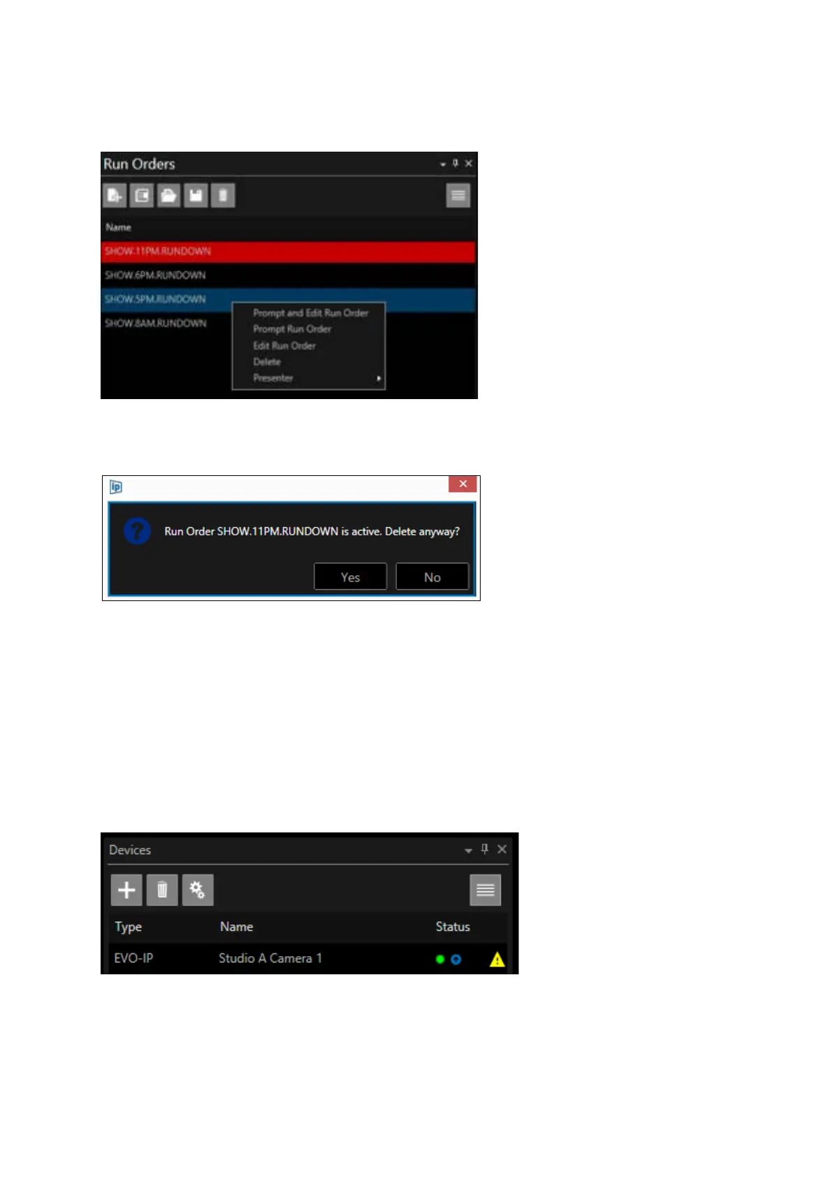 Please Note: If you choose to delete the currently live run order the currently prompted script will be