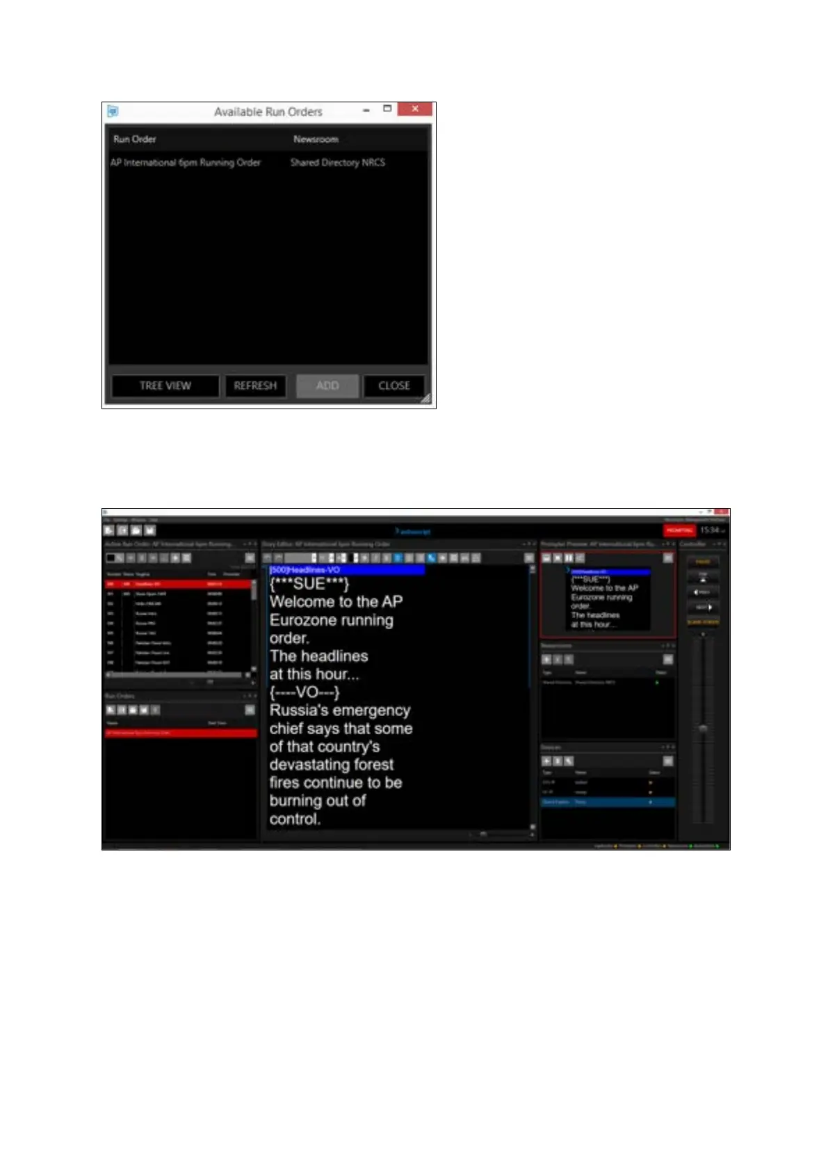 The stories will begin to load and populate the Run Order, Story Editor and Prompt Preview windows