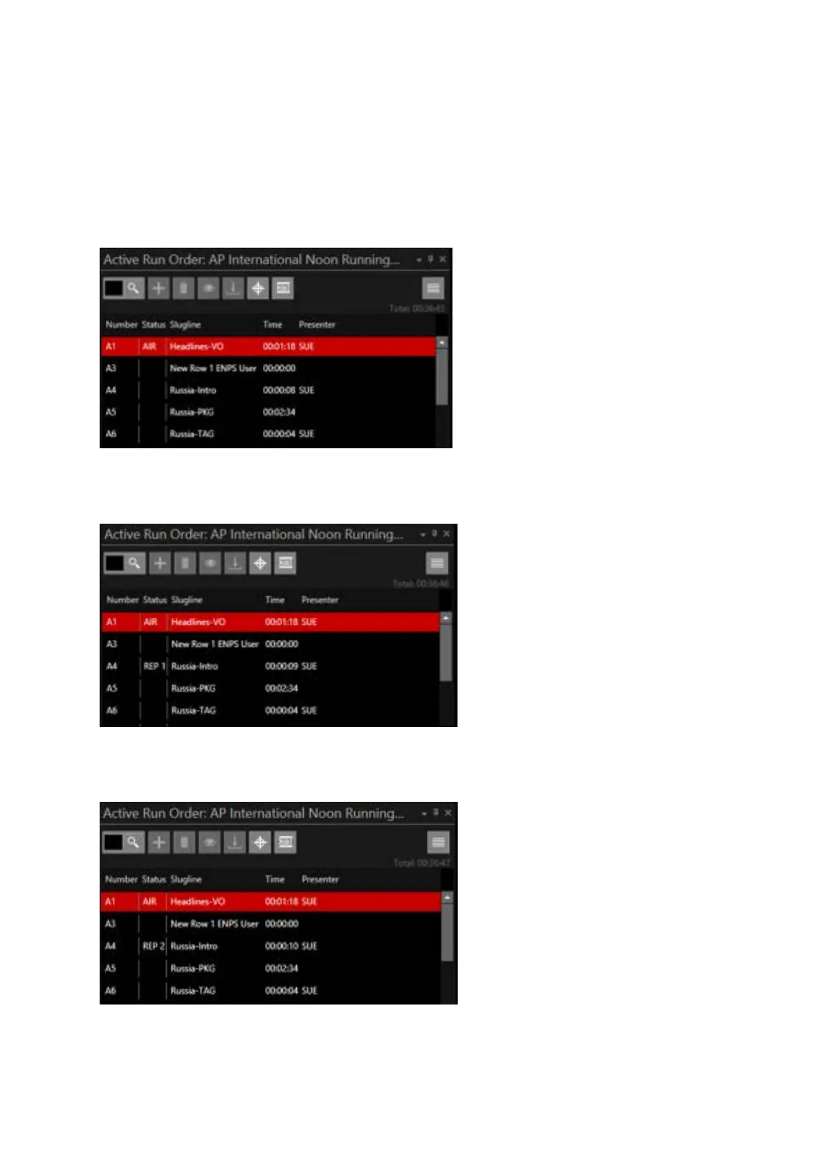 When the rundown is first loaded into WP-IP this column will not display the REP status.