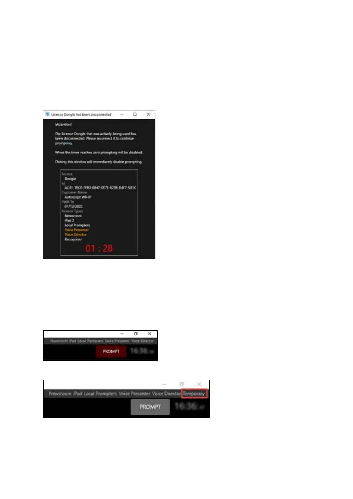 When the timer reaches 0 the licence will revert to a Temporary licence and Prompting will be