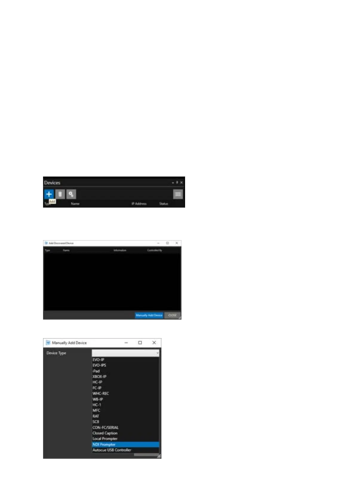 To add an NDI Prompter, in the Devices pane, click the + button.