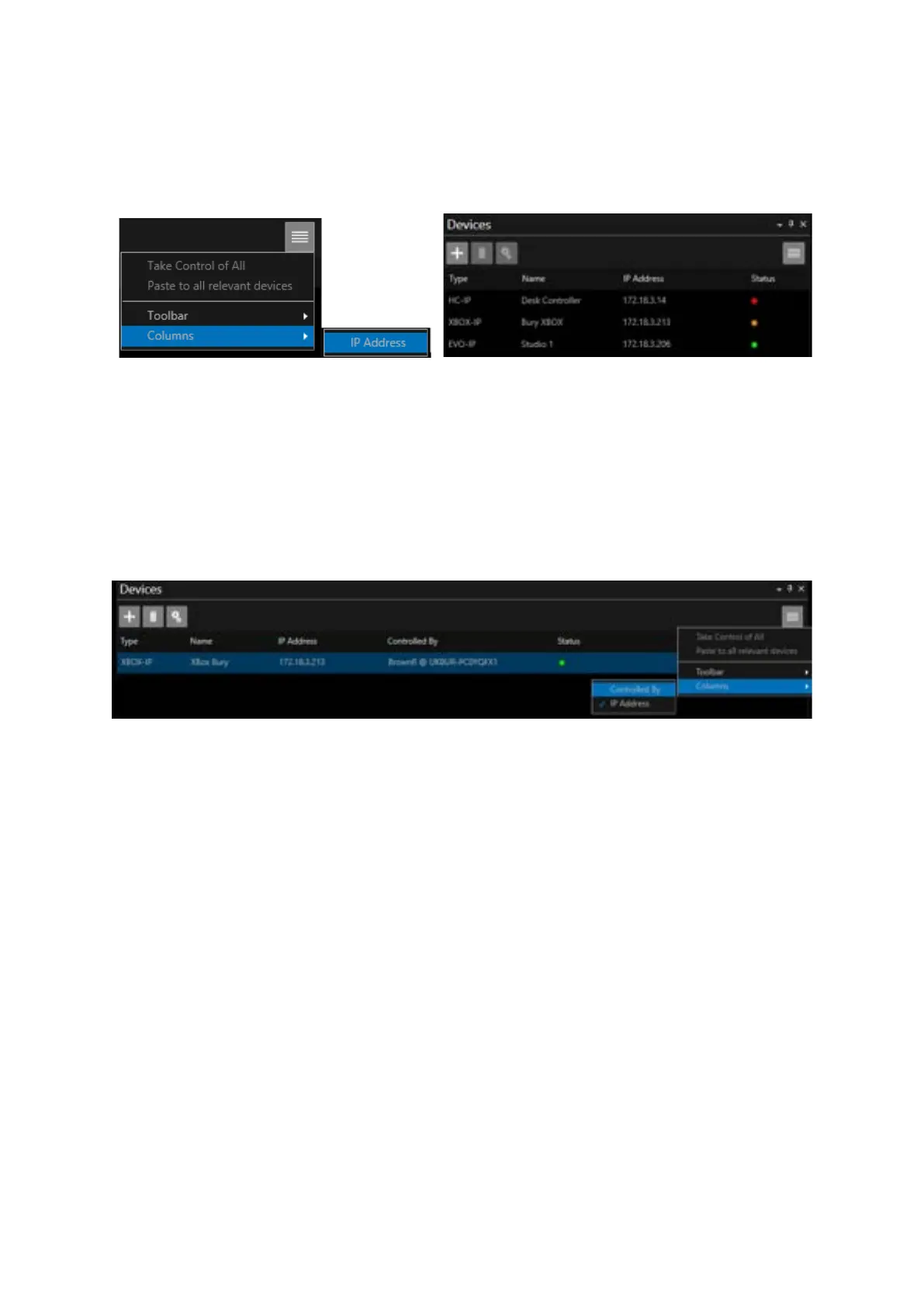 To display the device IP address in the devices pane, click the burger then Columns/IP Address