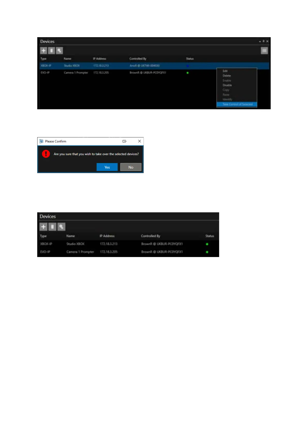 Clicking Yes will result in BrownR@UKBUR-PC0YQFX1 taking over that device.
