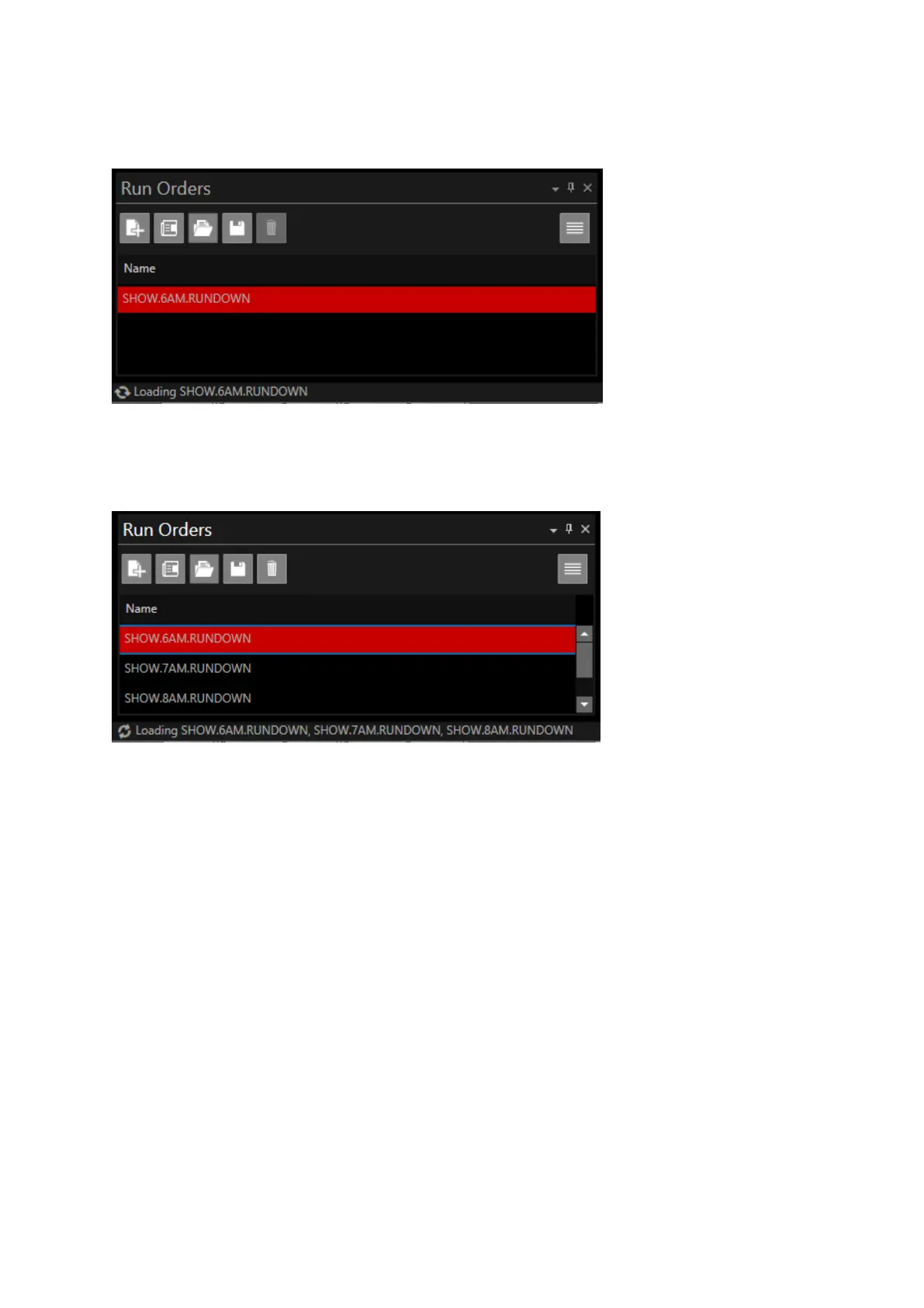 Please Note: when a Run Order from a file has loaded completely the message “File loaded” will be