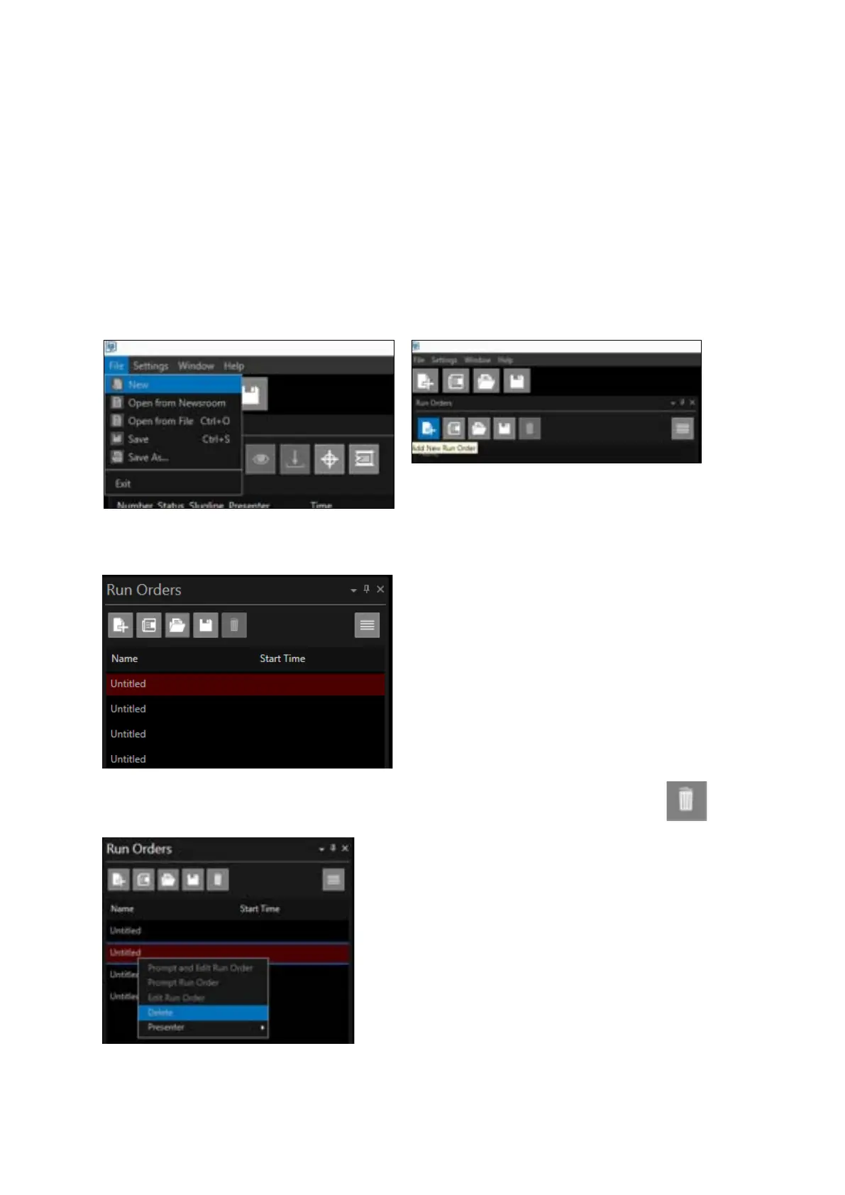 To add a new Run Order click “File/New” or ALT+F + N, or click + in the main toolbar or in the Run