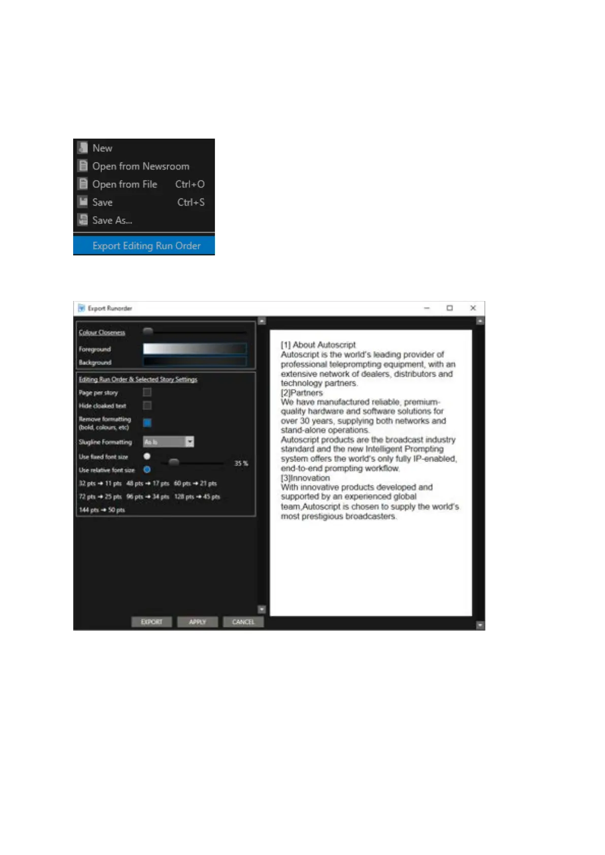 Select File/Export Editing Run Order: