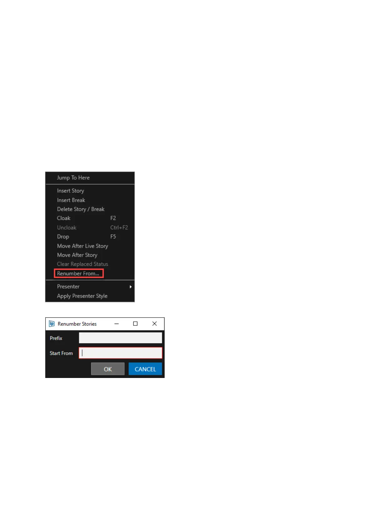 Please Note: Renumbering stories begins from the selected story. To renumber all stories in a Run Order, apply