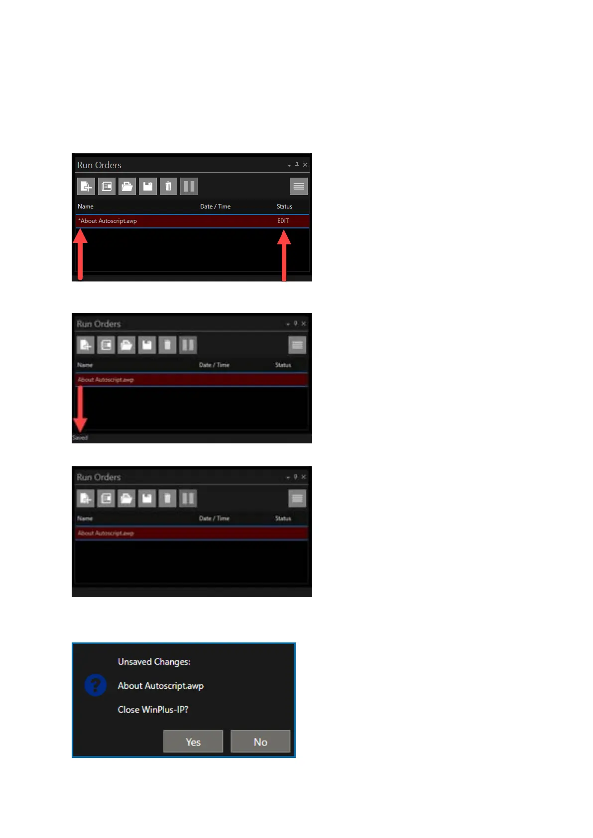 When the Run Order is saved the word Saved will appear in the status bar for a few seconds.