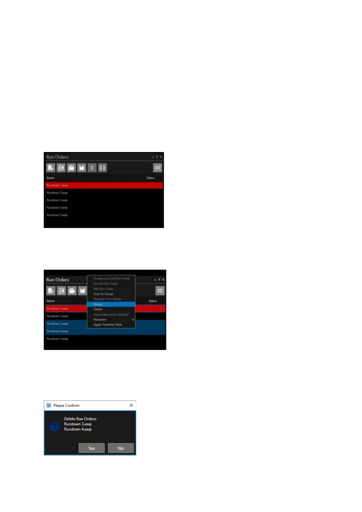 Select all the run orders you want to merge (in this case Rundown 1, 3 and 4) then right click and