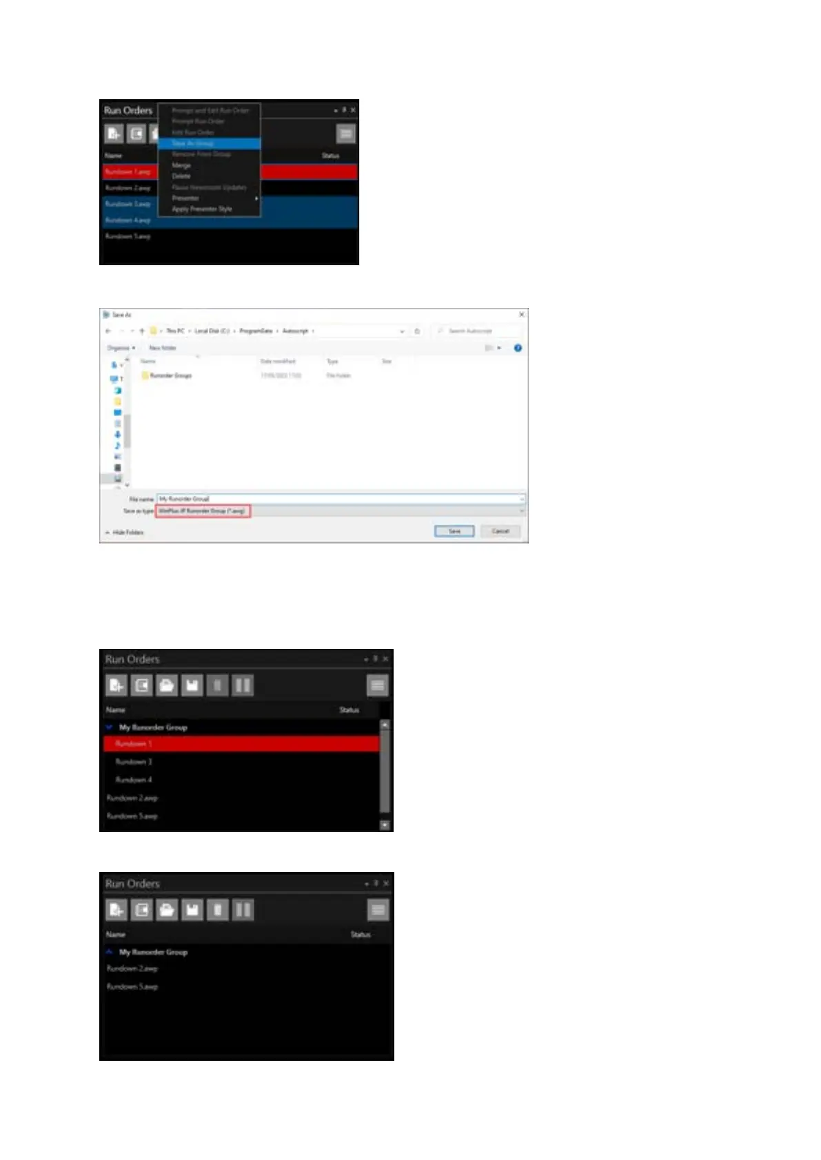 Once saved, the Run Orders pane will show the new grouped run orders name.