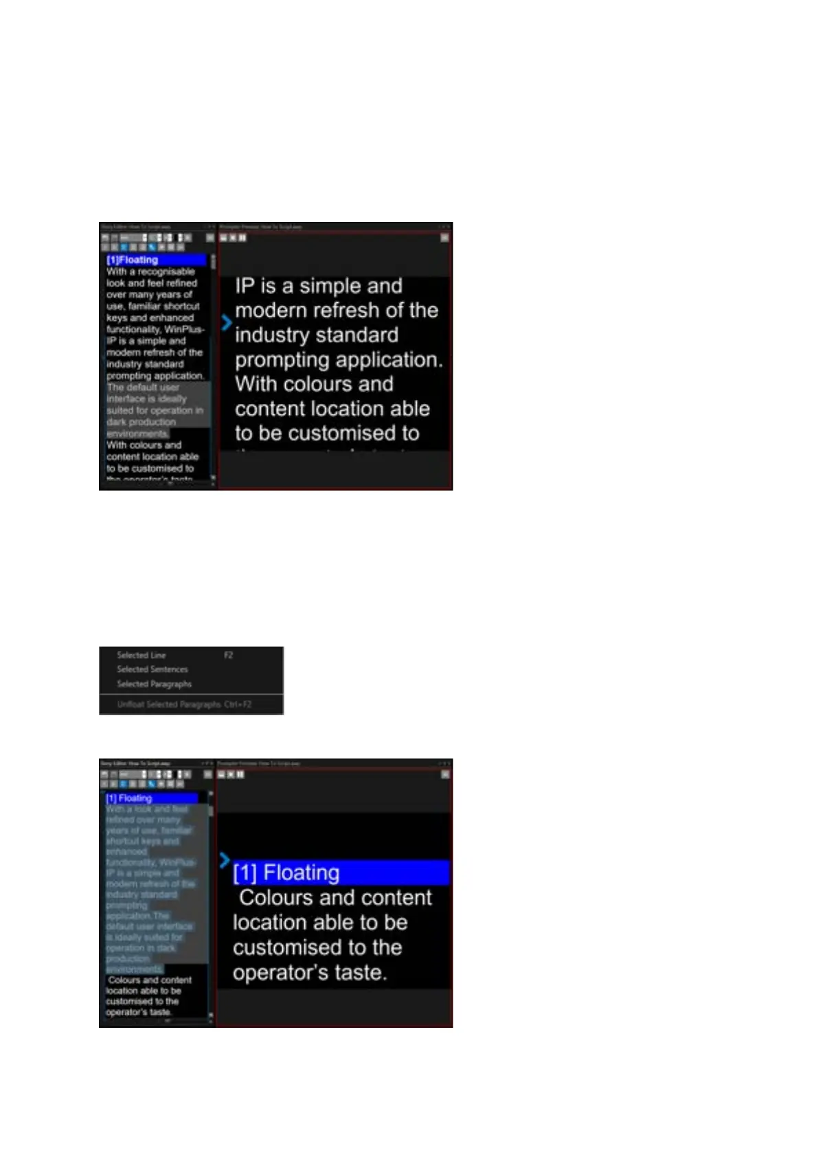 In the Story Editor, select the sentences you would like to Float and click F2