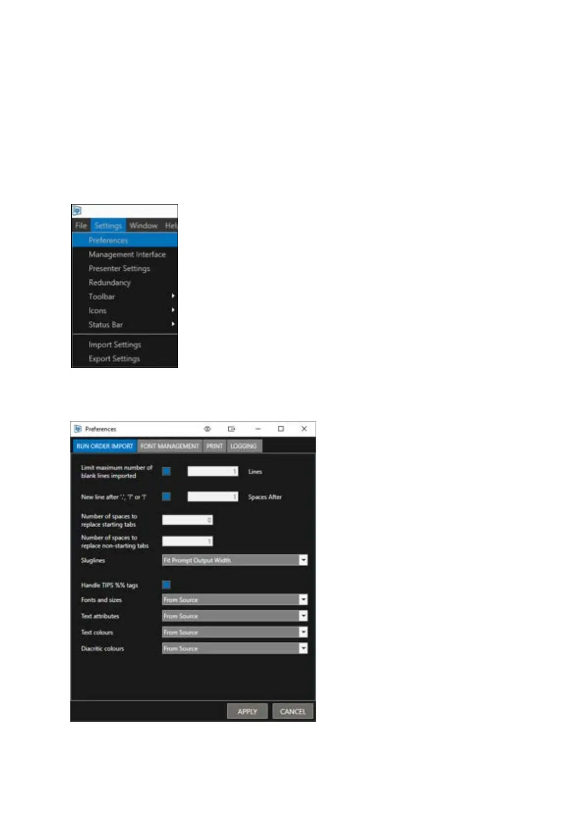 To view the Run Order Import options, click Settings/Preferences