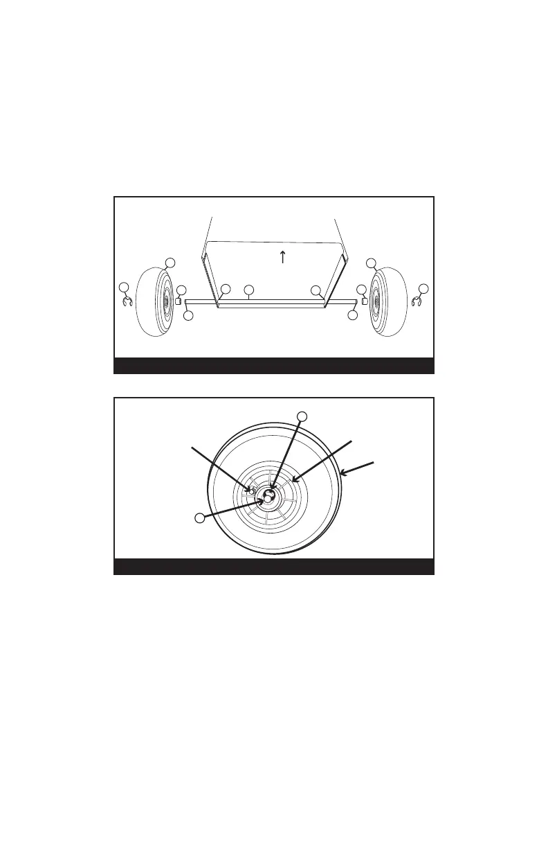 • Install one wheel (D) onto each side of the axle (A) with valve stem facing away
