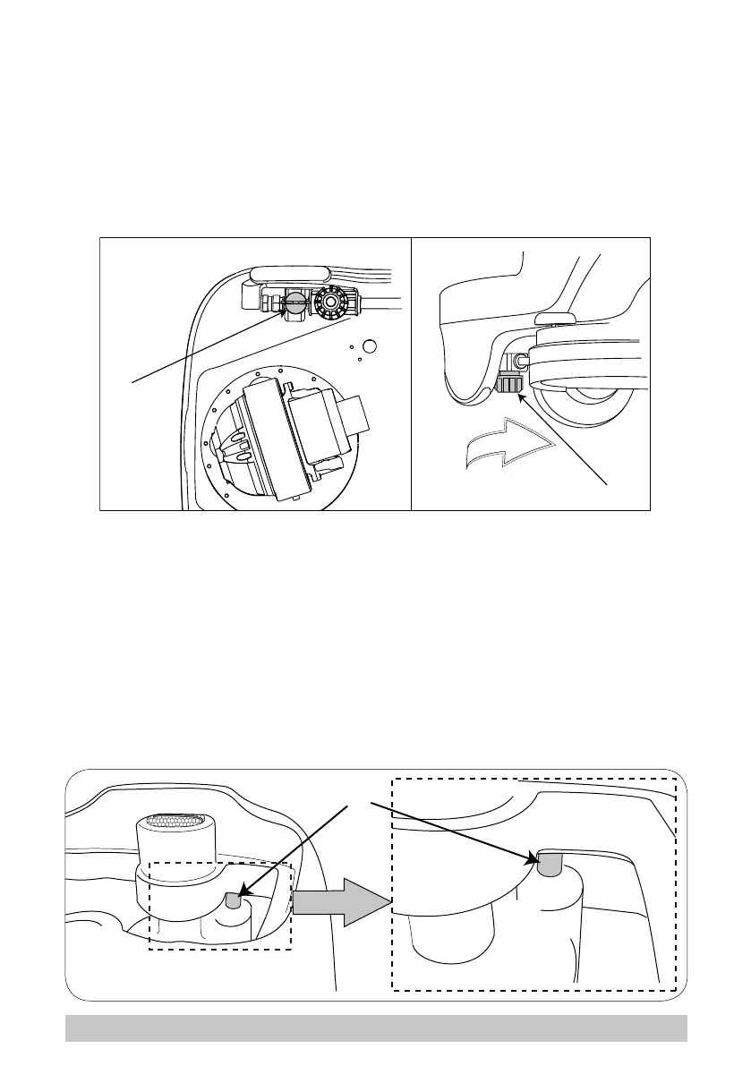 ► Close the tap (g. 18, ref. 1) on the front left of the machine, next to the drive wheel.
