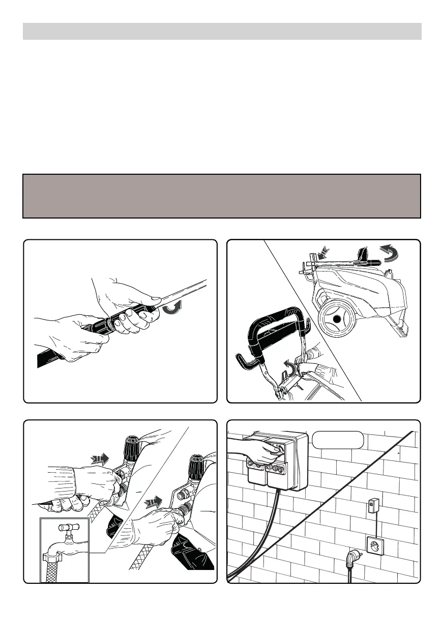 Continuer la lecture de ce livret sans brancher le nettoyeur haute pression au secteur et au réseau de distribution