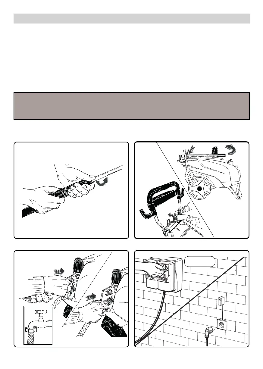 Continuar con la lectura del presente manual sin conectar la hidrolimpiadora a la red eléctrica e hídrica.
