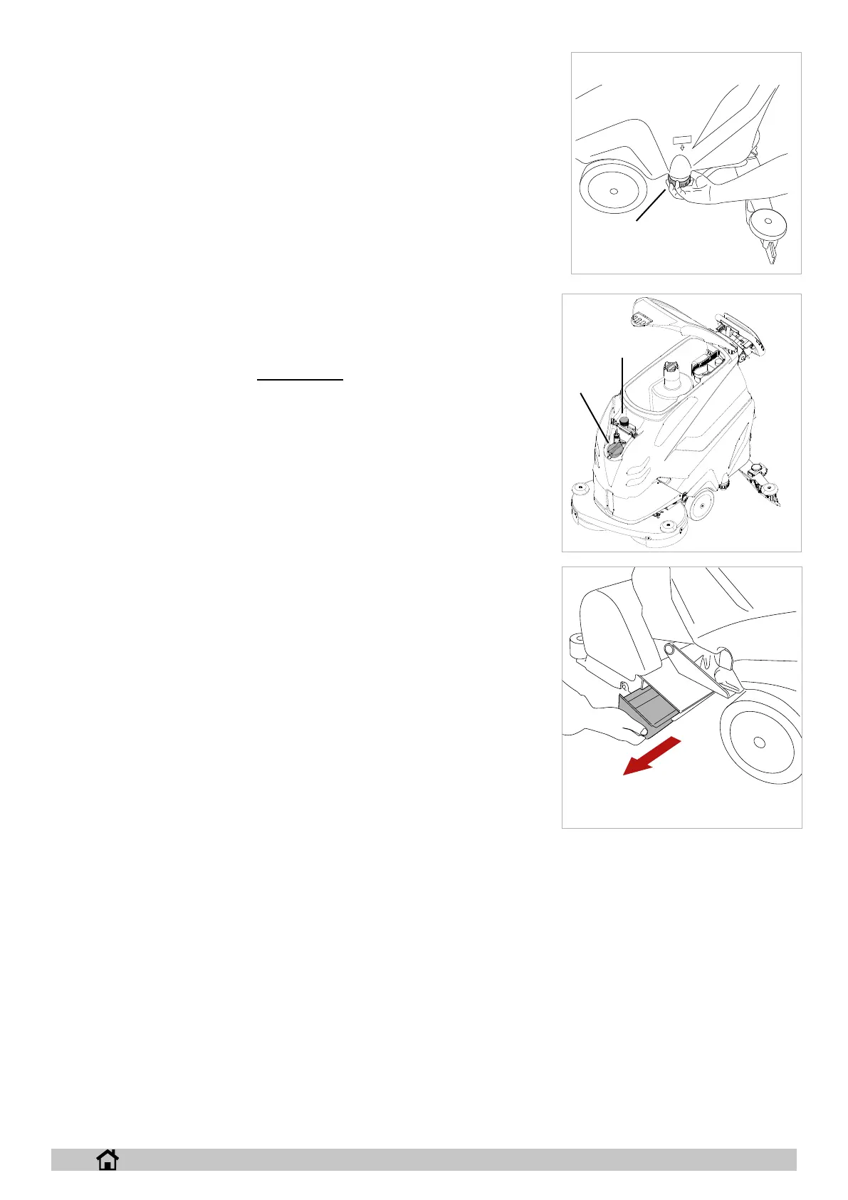 Open the dirty water tank lid, ll the container highlighted in the drawing (g. 14-ref. 2) with detergent.