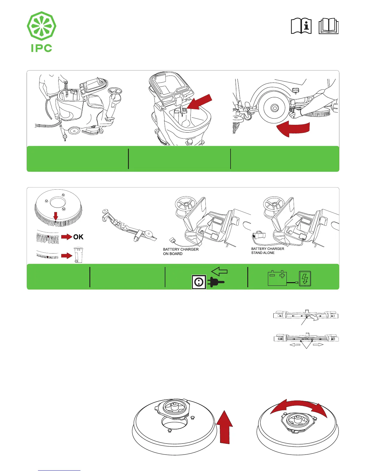 position on the drive disk. Lift the left brush with your hands and turn it anticlockwise, locking it in position on the drive disk.