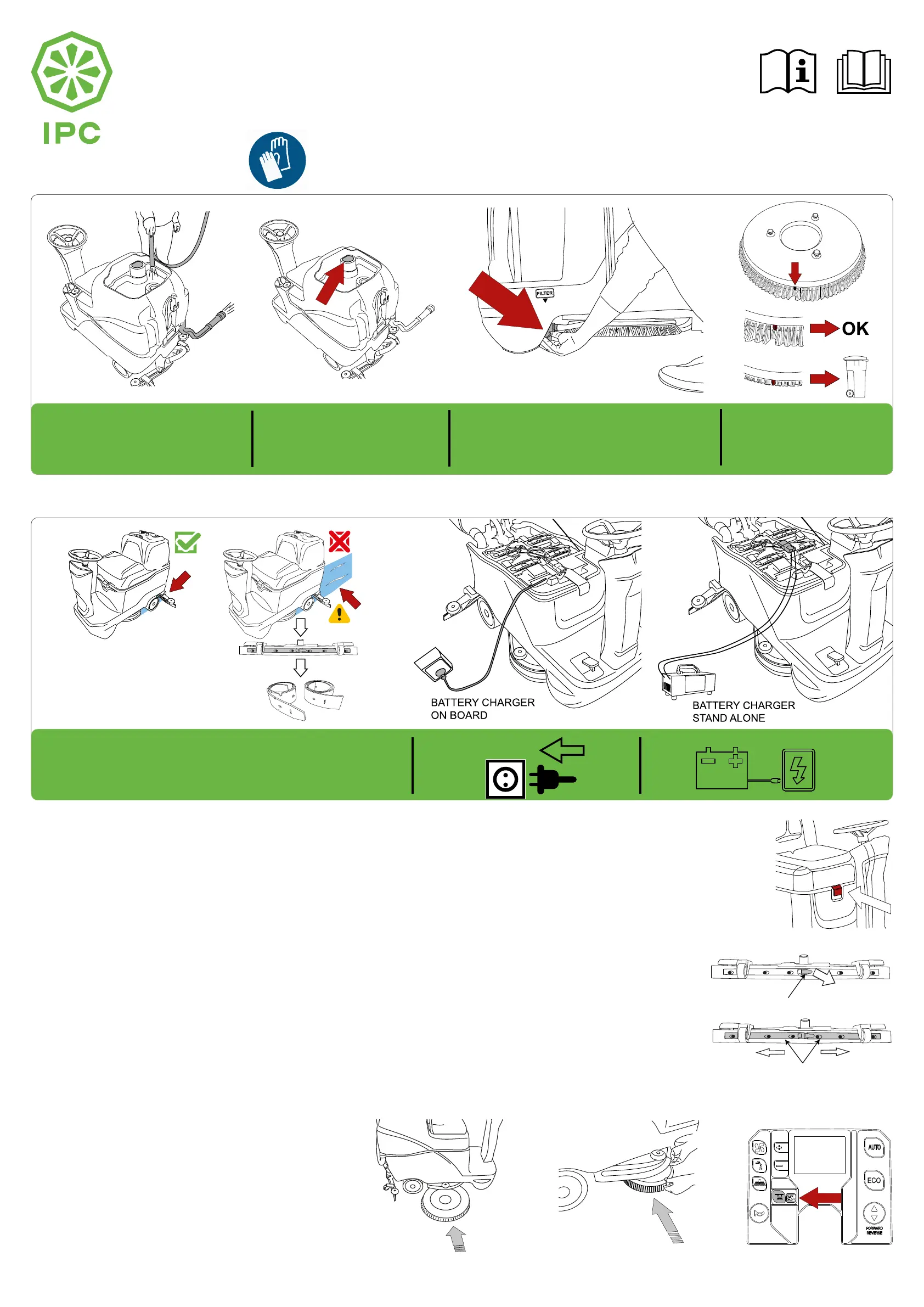 disconnect the batteries from the machine by pushing the lever as indicated in the picture.