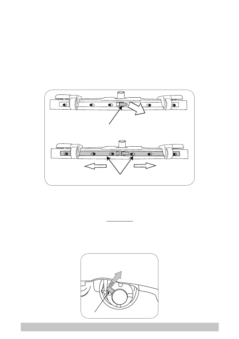 ► Reposition the two blade pressing devices by centering the wider part of the slots on the