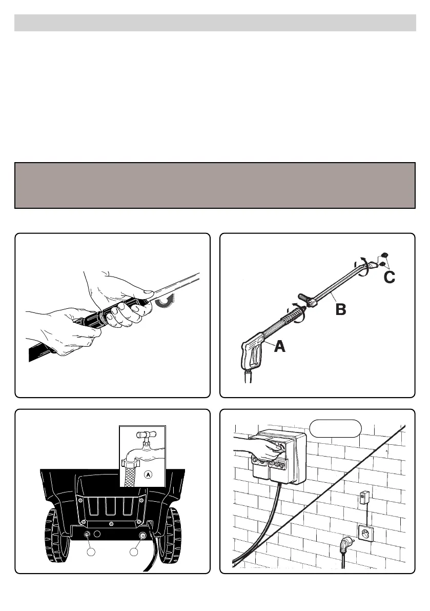 Den Hochdruckreiniger noch nicht an die Wasserleitungen und das Stromnetz anschließen und dieses Heft weiter