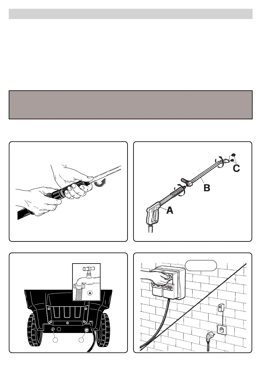 Continuar con la lectura del presente manual sin conectar la hidrolimpiadora a la red eléctrica e hídrica.