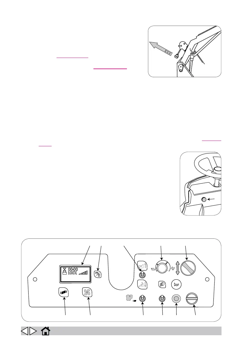 Bin up/down switch (3, g. 8): Lifts or lowers the debris bin.