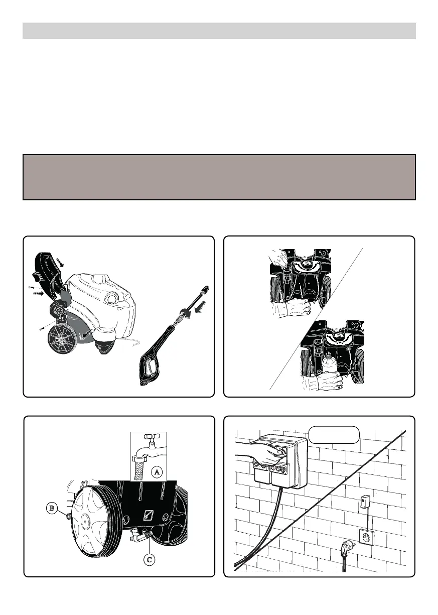 Continue reading this manual without connecting the cleaner to the power mains and the water supply.