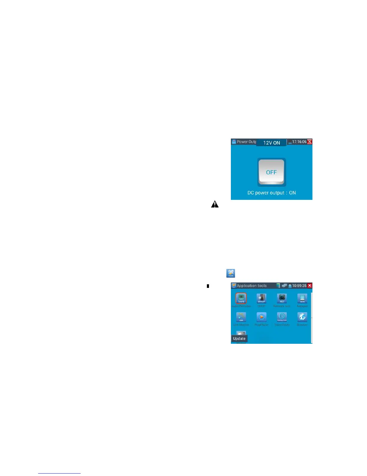 1 .Don’t input any power into the “DC12/1A OUTPUT” port of the IP camera tester to avoid