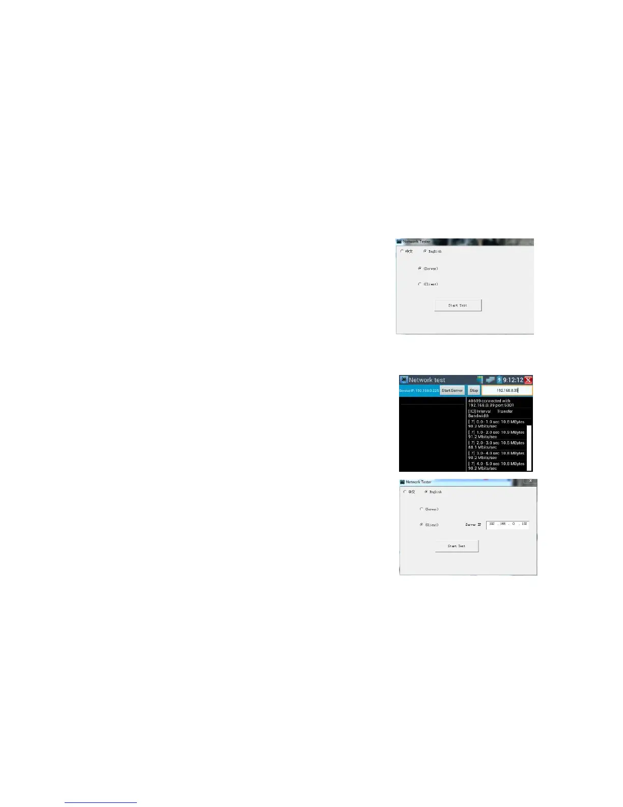 Or tester as a Server, computer as test Client(select Client, input tester’s IP address to test)