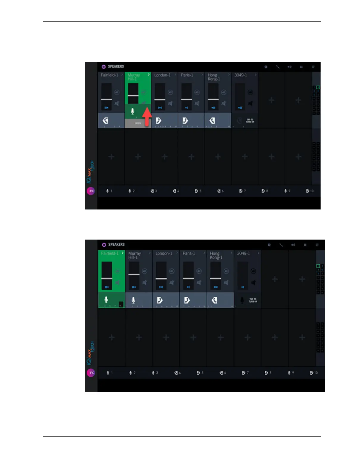When the channel is latched, the channel color is green and a black tab is displayed in the lower