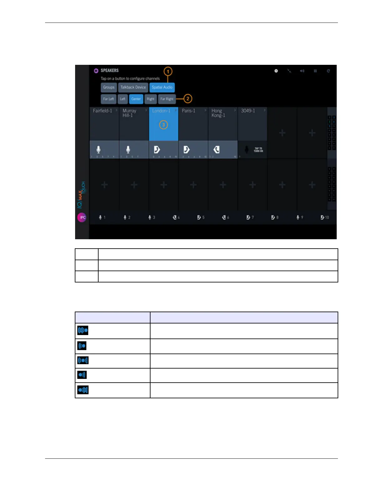 The icon at the bottom of each speaker channel indicates the spatial position assigned to the channel: