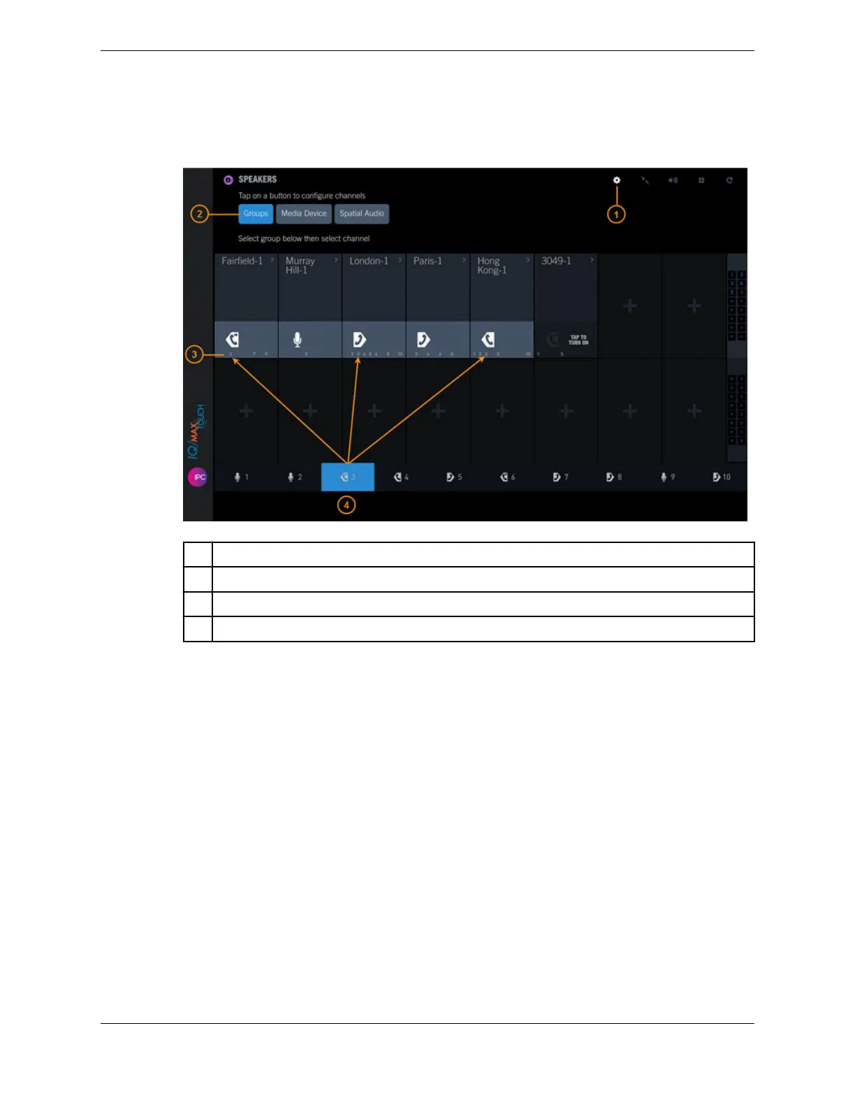 3. At the bottom of the screen, tap the speaker group to which you are assigning the speaker channels.