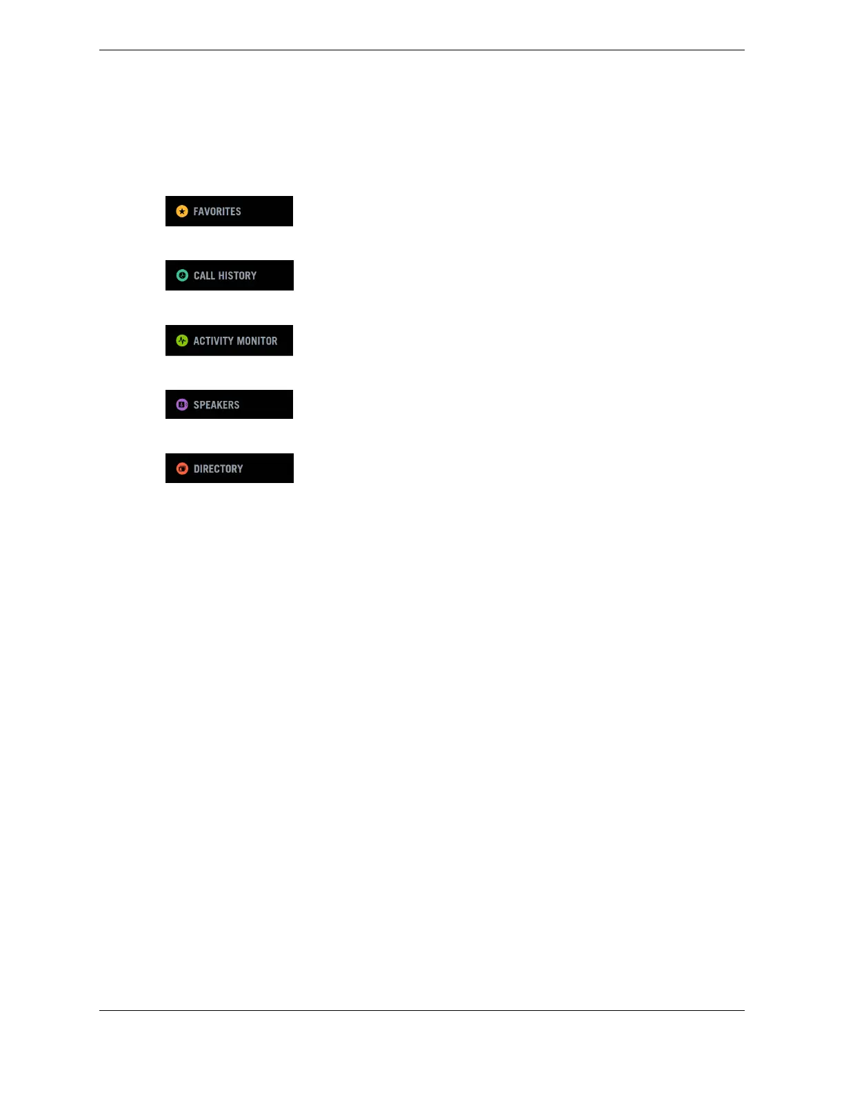 Directory – Displays contacts from the Enterprise directory and Personal directory.