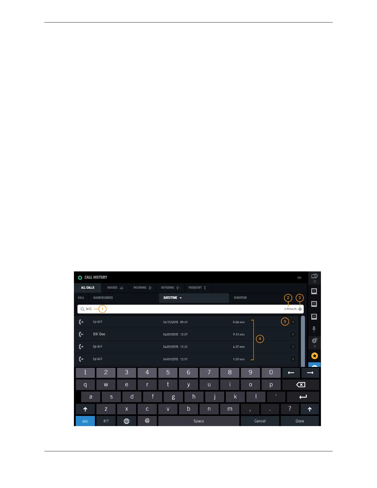 Tap the Remove icon (x) to remove the search results and return to the previous display (all calls