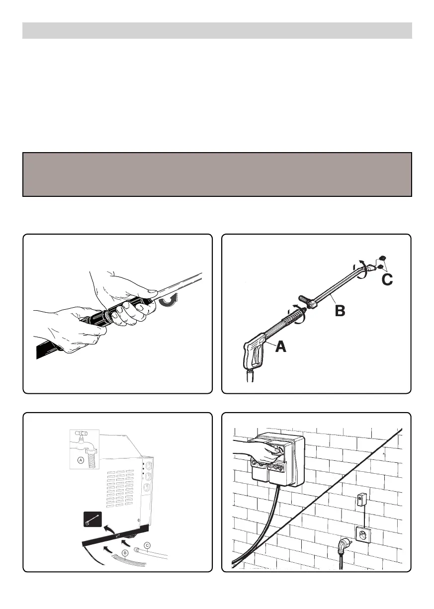 Continuar con la lectura del presente manual sin conectar la hidrolimpiadora a la red eléctrica e hídrica.