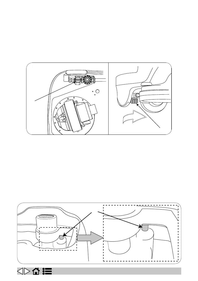 Close the tap (g. 18, ref. 1) on the front left of the machine, next to the drive wheel.