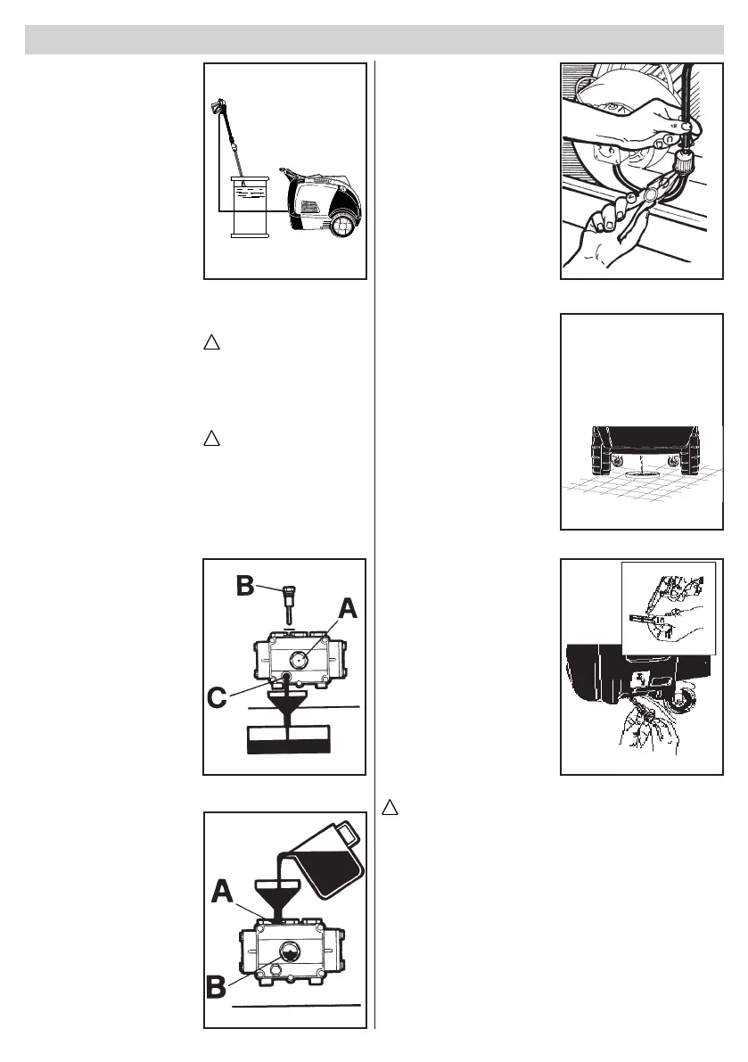 Open the drain cap (g. 15) (if