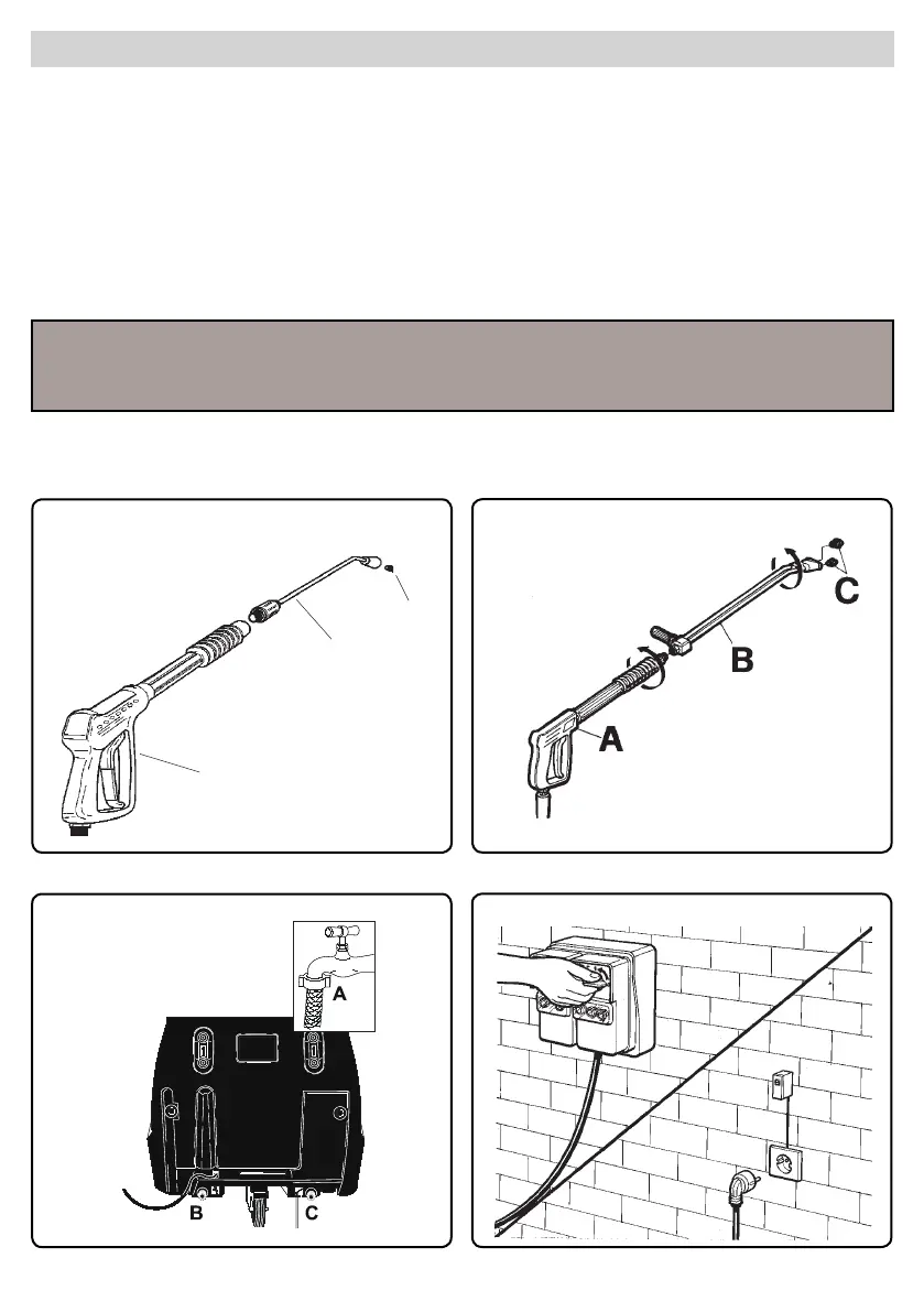Continuare la lettura del presente libretto senza collegare l' idropulitrice alla rete elettrica ed idrica.