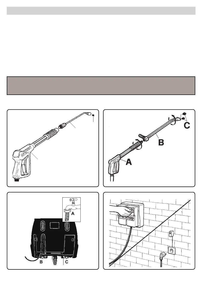 Den Hochdruckreiniger noch nicht an die Wasserleitungen und das Stromnetz anschließen und dieses Heft weiter