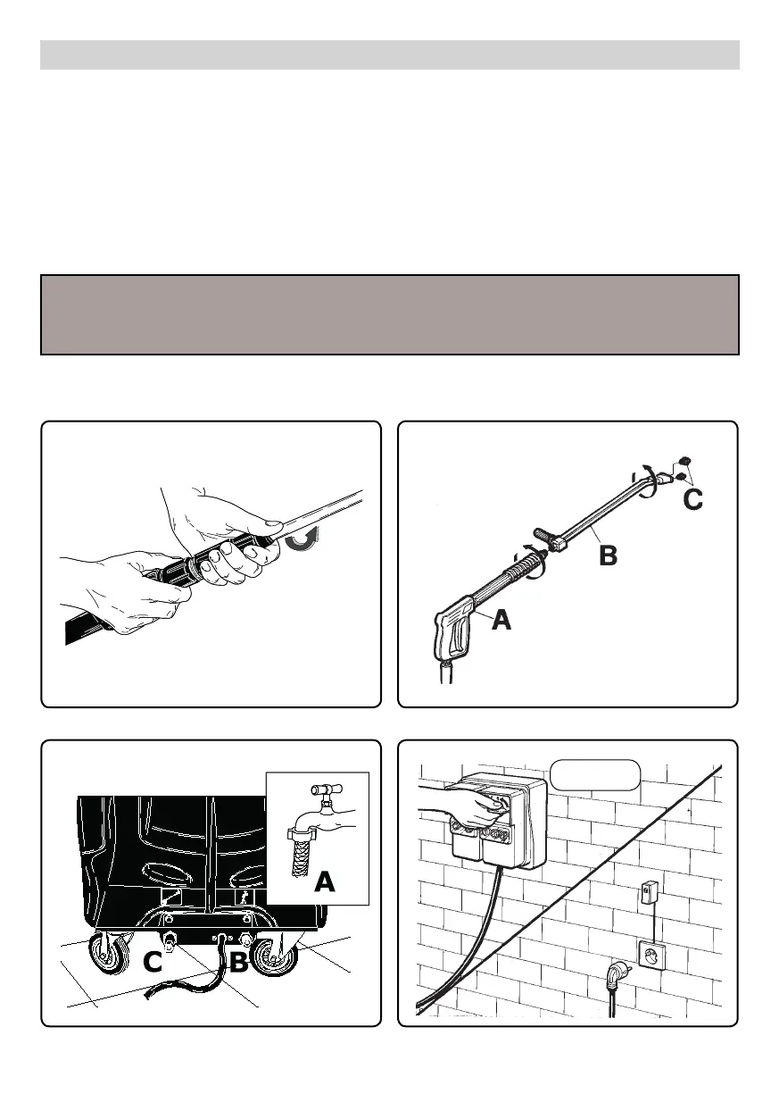 Continue reading this manual without connecting the cleaner to the power mains and the water supply.