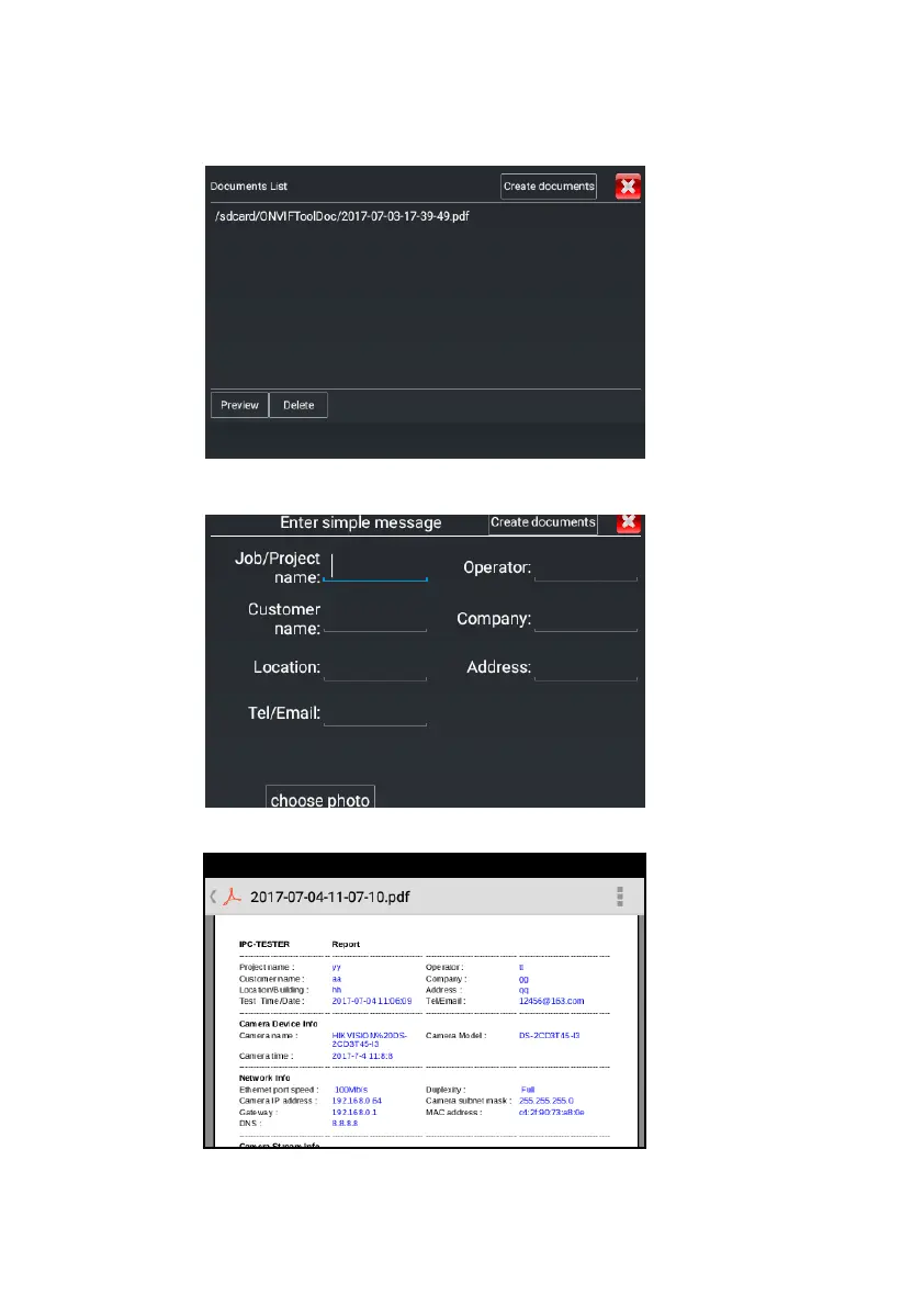 Enter the camera test information, click "Create Document" to complete the report.