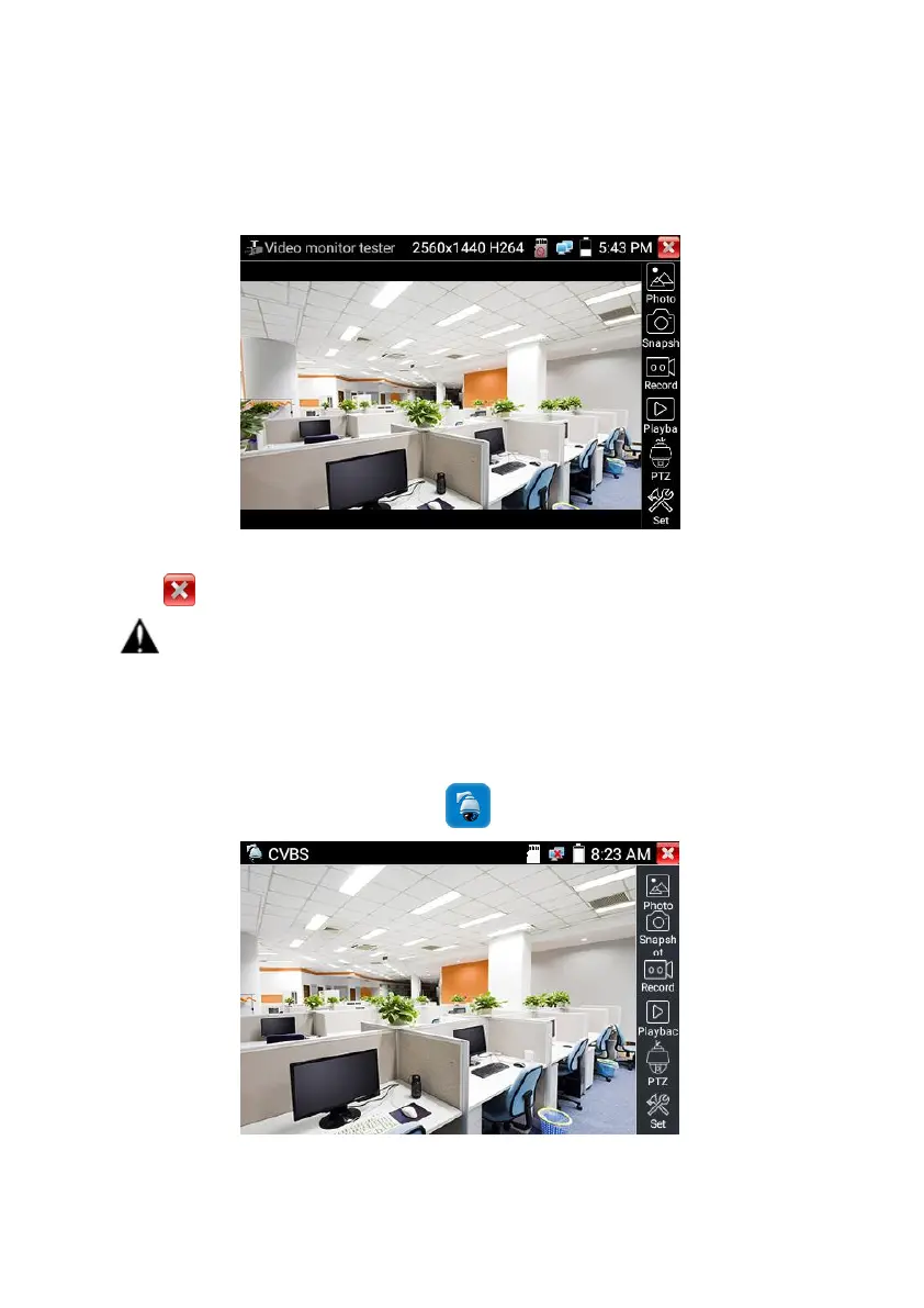 right. This button will give you access to Snapshot, Record, Photo, Playback, PTZ, and Set. Please refer