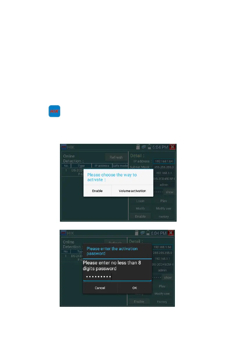 1. Hikvision activation:When connect the unactivated Hikvison camera to the tester, it will auto