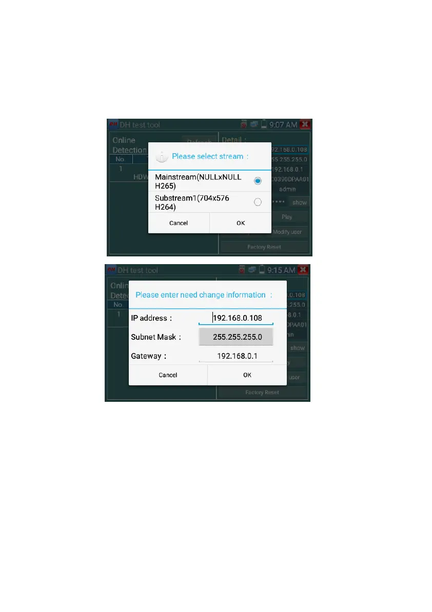 Modify network information: modify camera parameter, such as ip address, subnet mask, gateway etc.
