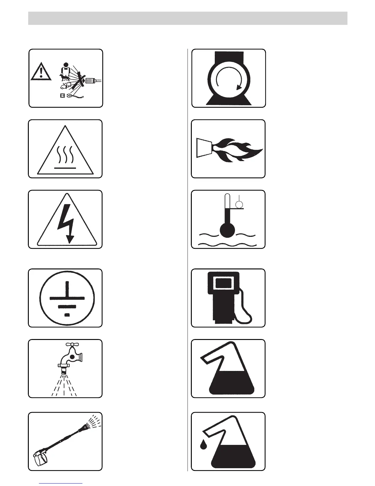 DESCRIPTION SYMBOLES SUR LES NETTOYEURS HAUTE PRESSION