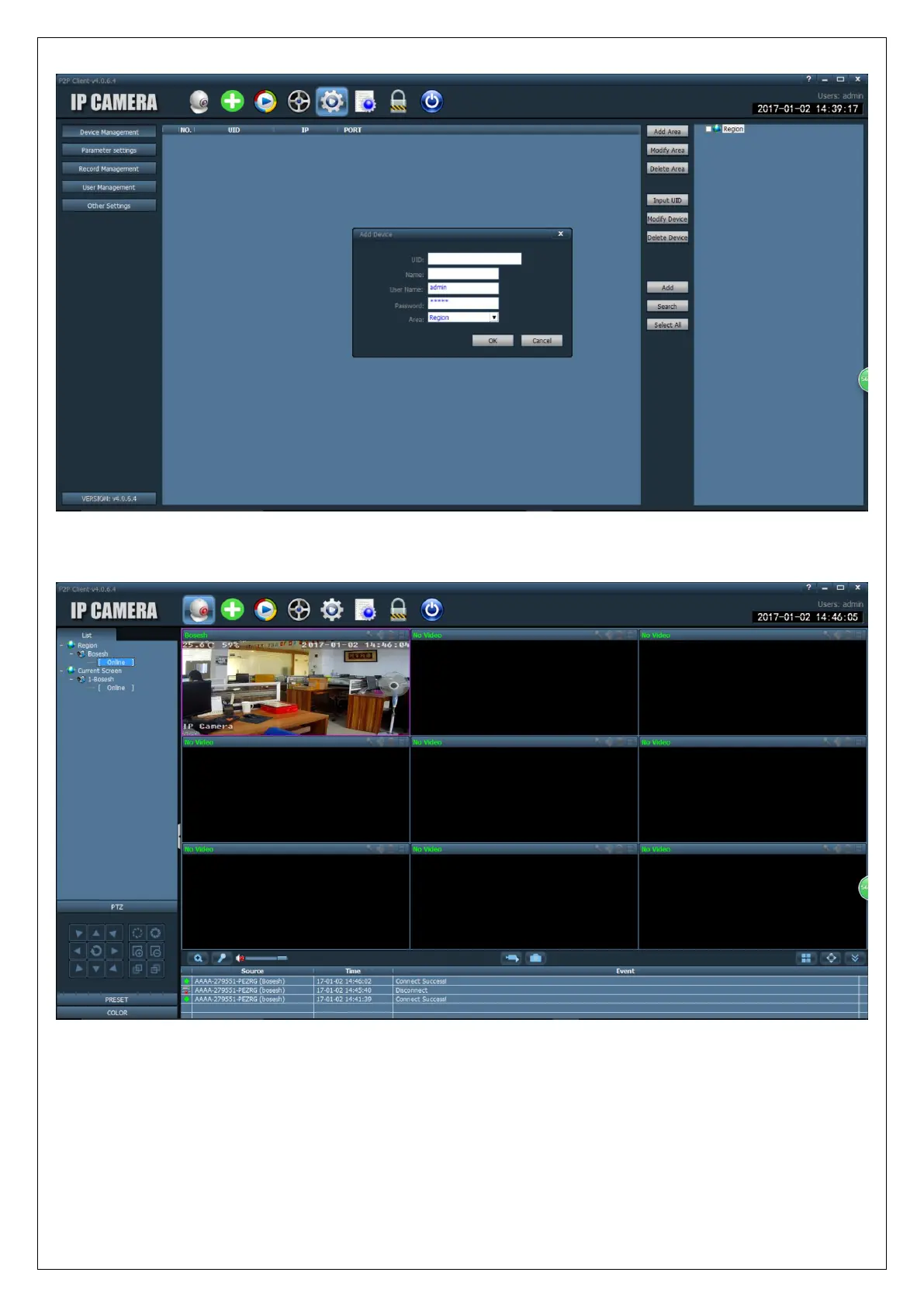 In the client, you can manage multiple cameras and watch up to 32 channel live