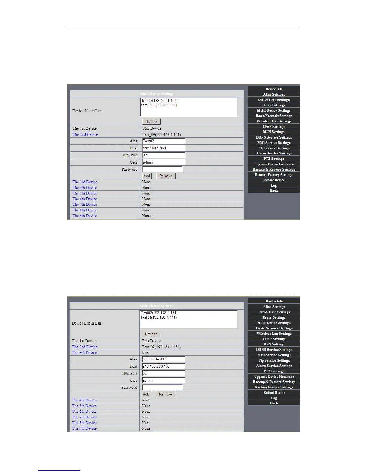 Device” and Double click the item in the “Device List in LAN”, Alias、Host and Http Port